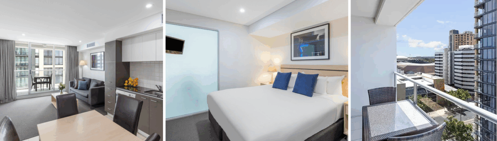 Our spacious 1, 2 and 3 bedroom serviced apartments offer full hotel services and are a popular choice for singles, groups and families seeking great-value Adelaide CBD accommodation for leisure or business. All apartments are fully self-contained with kitchen and laundry facilities and boast contemporary furnishings, cable TV, internet access, direct dial telephones, writing desks and individually controlled reverse cycle air conditioning. The 1 and 2 Bedroom Executive Apartments also feature the added luxury of an in-room spa bath.
